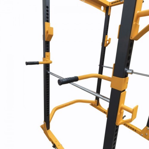 Our Power Rack is a Heavy Duty power cage that creates a safe and suitable environment for squatting, benching, and other lifts. Unlike many other cages in this price range, our cage comes with band hooks at both the top and the bottom of the cage, as well as dipping handles, and a pull up/chin up attachment across the top of the cage as well as numbered uprights to help you set your catcher/bar holder height with ease. Bar holders at both the front and back of the cage, giving ease of use whatever you are doing.